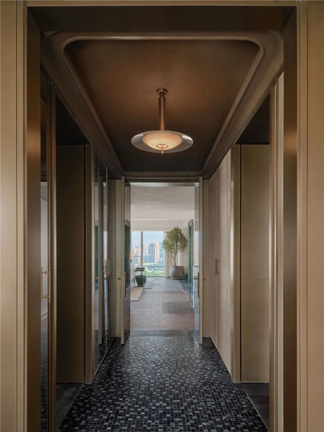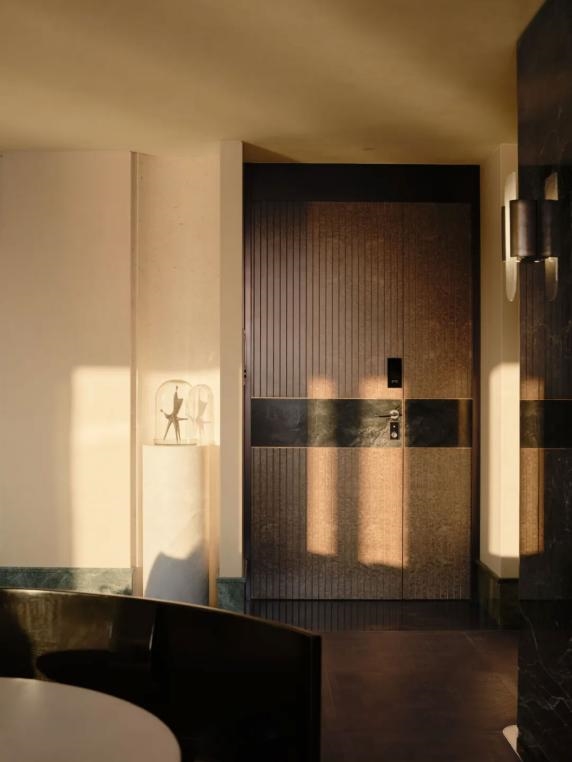 门套也是建筑手法引入室内的关键要素,同样也是大块面材质的延伸。在不同空间的过渡上建立秩序和仪式感,帮助统一空间的整体视觉体验。