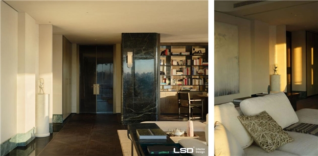 OPUS ONE 500户型拥有绝佳的尺度条件,但在设计层面也客观地增加了难度。面对空间尺度的分配、景观资源的调动、行为动线的梳理、生活方式的打造等实际落位问题,我们尝试以路易斯·康在《静谧与光明》中的建筑哲学思考作为指导线索,最终将设计分布为两条平行但最终交汇的路径。