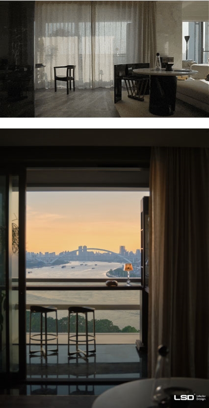 面向江景的部分,是LSD将建筑设计手法引入室内空间的重要部分,以此希望精神上的共鸣可以就此发生。