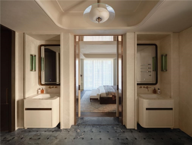 对称式布局洗手台,符合当下的生活使用习惯,同时也让空间具备美学要素。